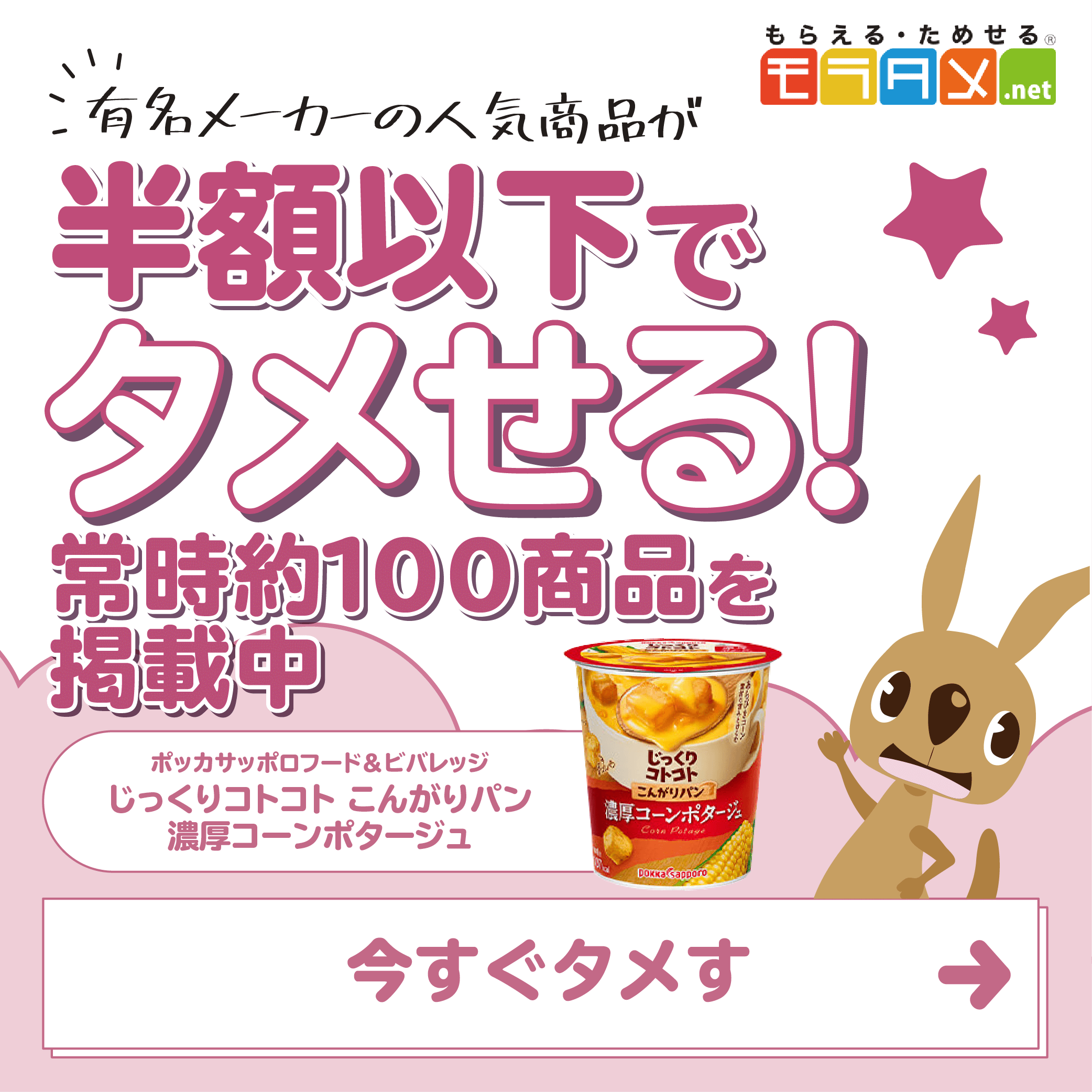 | 会員100万人突破!話題の商品がおトクにモラえる!タメせる!お試しサイト モラタメ.net累計4000アイテム掲載中!... |